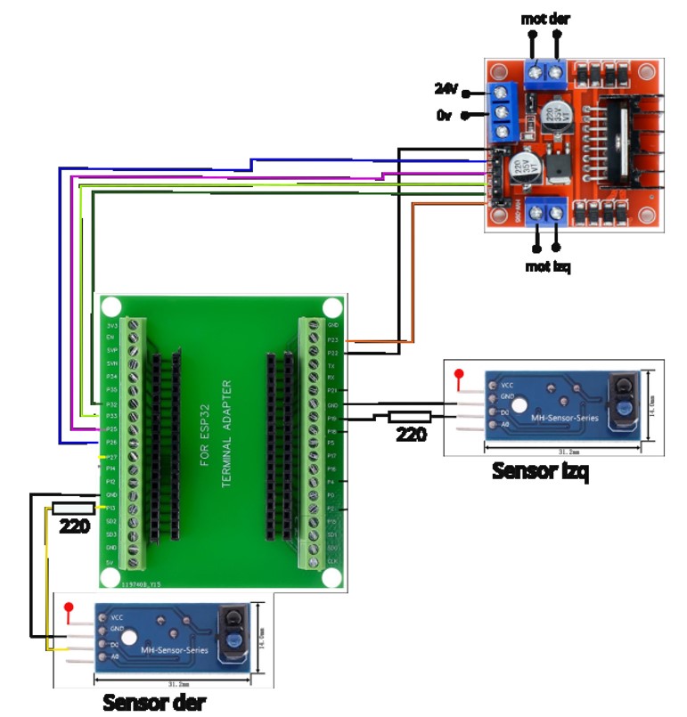 Este laboratorio remoto consiste en un robot móvil conectado a dos motores para movimiento y dos sensores infrarojos para detectar lineas negras.